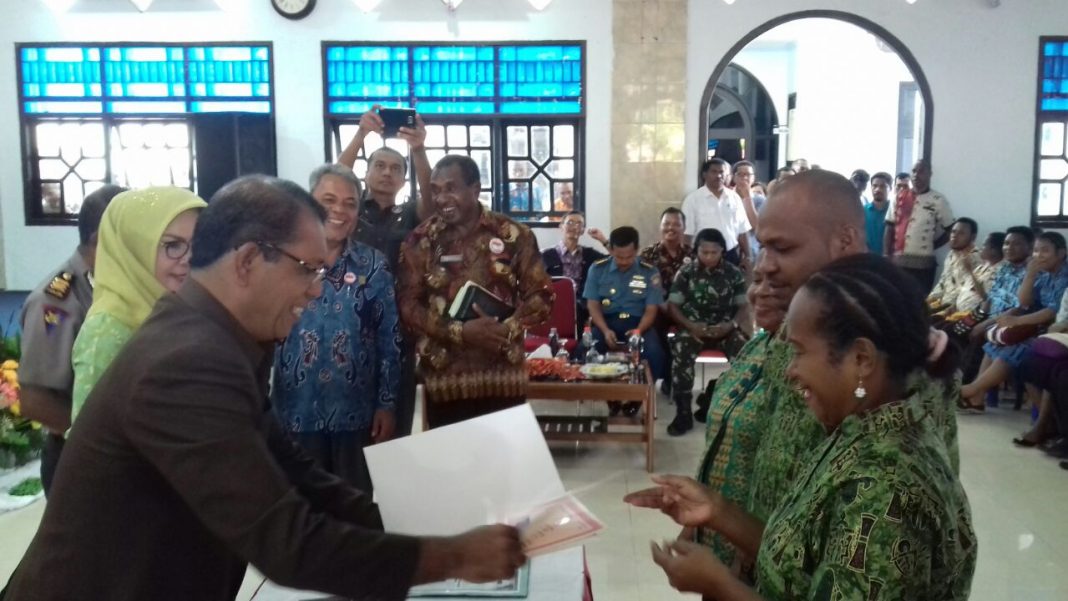 “Mengingat animo dan tingkat kesadaran warga kota jayapura dalam kepengurusan hak-hak sipil maka pemerintah jayapura emlalui disdukcapil berupaya meningkatkan pelayanan kepada warga masyarakat dengan bekerja dengan pemuka agama untuk membantu mendapatkan kepastian hukum terhadap status perkawinannya,”jelas Sekda