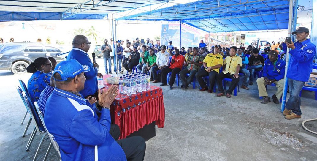 SARMI (PT) – Usai melaksanakan Kampanye Akbar Perdana di Lapangan Thyes Eluay Sentani, Kamis (1/3/2018), selanjutnya pasangan Calon Gubernur Papua dan Calon Wakil Gubernur Papua, Lukas Enembe, S.IP, MH-Klemen Tinal, SE, MM atau yang akrab dikenal “LUKMEN” nomor urut satu melaksanakan Temu Kader di Kantor DPC Partai Demokrat Kabupaten Sarmi, Sabtu (3/3/2018).