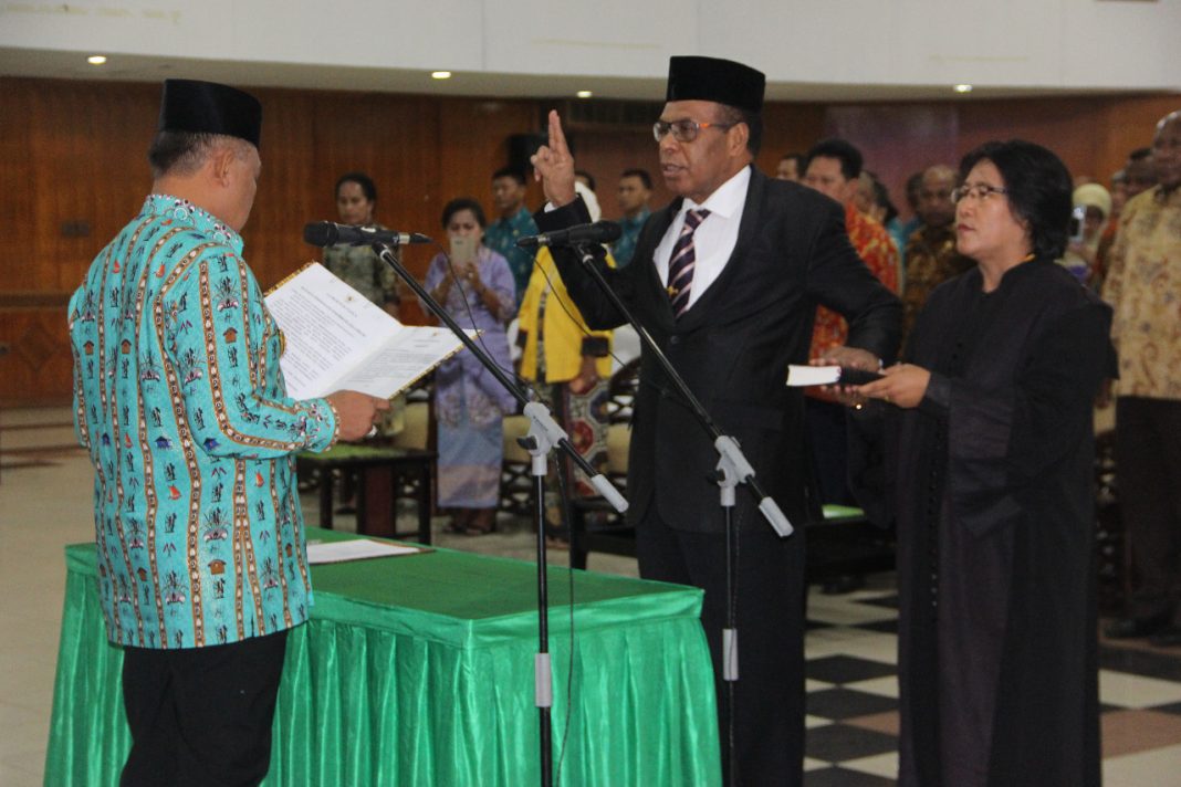 JAYAPURA (PT) – Setelah sempat ditunjuk mengisi posisi Plt. Asisten Bidang Perekonomian Provinsi Papua, kini Noak Kapisa resmi menjabat Asisten Bidang Perekonomian setelah Penjabat Gubernur Papua, Soedarmo melantiknya, Kamis (17/5/2018) di Sasana Krida Kantor Gubernur Papua.