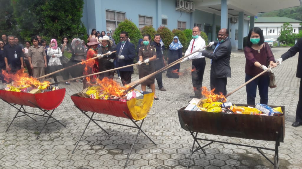 JAYAPURA (PT) – Balai Besar Pengawas Obat dan Makanan (BPOM) Jayapura memusnahkan hasil penertiban pasar dan kosmetik Ilegal yang mengandung bahan berbahaya Tahap II Tahun 2018, Senin (17/12).
