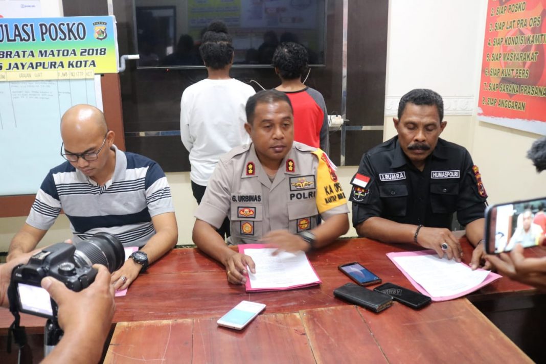 Kapolres Jayapura Kota AKBP Gustav R. Urbinas didamping Kasat Reskrim AKP Sugeng Ade Wijaya, SIK dan Kasubbag Humas Iptu Jahja Rumra, SH, SIK mengatakan, kedua pelaku kekerasan dan penganiayaan ditangkap di dua lokasi berbeda, dimana DKD ditangkap di Kampung Puay Sentani, sedangkan LA ditangkap di Padang Bulan, Waena.
