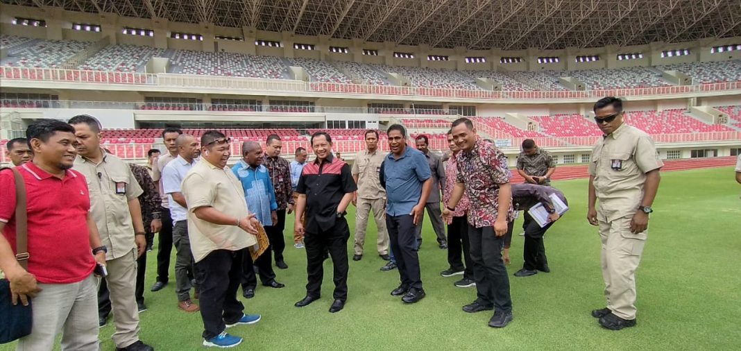 Mendagri didampingi Sekda Papua, Hery Dosinaen, Plt. Kadisorda, Alex Kapisa, Bupati Jayapura, Matius Awaitouw meninjau Venue Aquatic dan Istora Papua dan stadion Papua Bangkit serta melihat lintasan dan  rumput lapangan.
