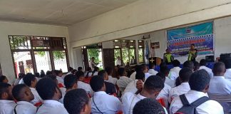 Polantas Sosialisasi Keselamatan Berlalu Lintas di SMA YPPGI Sentani