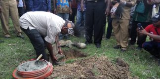 Bupati Awoitauw Letakkan Batu Pertama Kantor Kampung Persiapan Yansu Timur