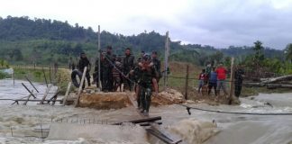 Sepasang Lansia Terkepung Banjir Diselamatkan Prajurit TNI
