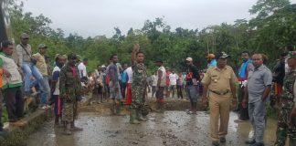 Longsor, Kodim Sarmi dan Warga Buat Jembatan Darurat