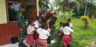 Satgas Pamtas Ajari Murid SD Inpres Moso Cara Hidup Sehat