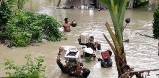 Sungai Tami Meluap, Satgas Yonif PR 328/DGH Selamatkan Warga Terjebak Banjir