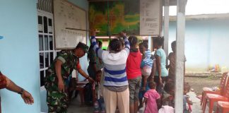 Babinsa Koramil Yapsel Bantu Petugas Posyandu Beri Vaksin Polio