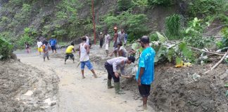 Akses Jalan Depapre Sentani Tertutup, Polisi Bersama Warga Bersihkan Material Longsoran