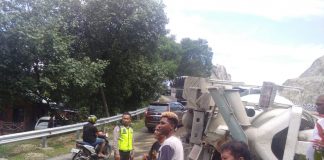 Di Sentani Timur, Hilang Kendali Truk Molen Terguling
