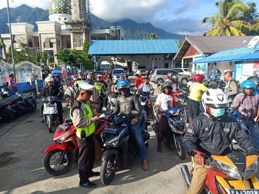 Dilanjutkan dengan razia dengan sasaran roda dua yang berlangsung di depan kantor Satuan Lalu Lintas tepatnya di jalan raya Sentani depan Masjid Al Aqsa yang dipimpjn KBO Lantas Polres Jayapura Aiptu Ramlan Jaya bersama anggota Lantas.