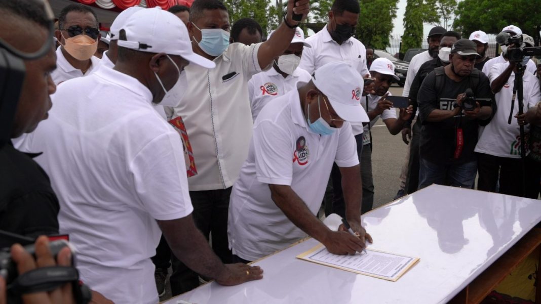 Pada kesempatan peringatan Hari AIDS Sedunia, Gubernur Lukas bersama jajaran Forkompimda Provinsi Papua dan segenap elemen menandatangani fakta integritas bersama, sebagai komitmen dalam memutus mata rantai penyebaran virus HIV/AIDS di tanah Papua dengan target di tahun 2030 nanti Papua sudah terbebas dari ancaman virus ini.