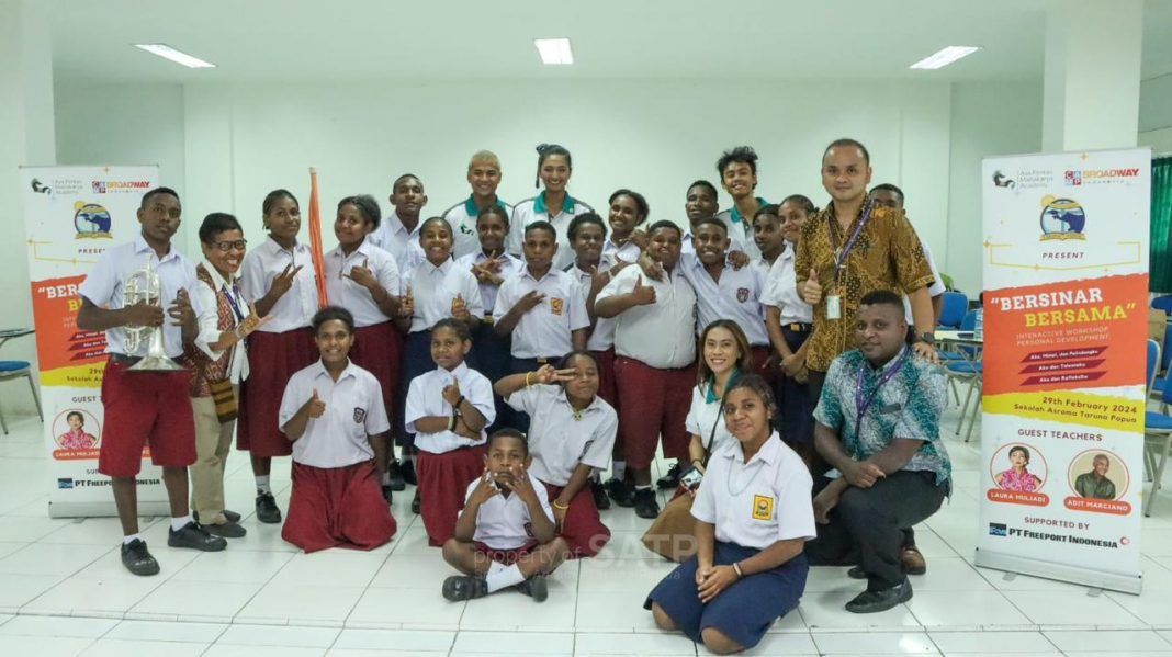 TIMIKA (PT) – Sebanyak 20 siswa Sekolah Asrama Taruna Papua (SATP) mengikuti pelatihan interaktif pengembangan diri bertajuk “SATP Road to Mainstage Broadway Jakarta”, di SP-4 Mimika pada Kamis (28/2). “Kegiatan ini untuk membuka wawasan dan cakrawala berpikir, serta mengajak mereka untuk berani bermimpi dan mewujudkannya,” kata Kepala Sekolah SATP Yohana Tnunay dalam rilisnya yang diterima Papua Today.com kemarin