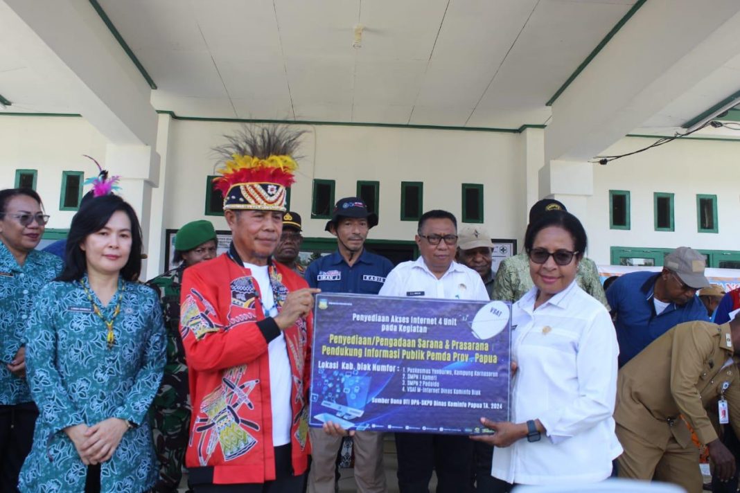 Sementara Pemda Biak Numfor menerima penyedian akses internet (VSAT 6 Mbps) sharing publik untuk 4 lokasi, yakni Puskesmas Saribi (Pulau Numfor), SMP N 1 Kameri (Pulau Numfor), SMP N 2 Padaido dan VSAT M-Internet Dinas Kominfo Biak. Kepala Dinas Kominfo Papua, Jeri A. Yudianto mengatakan, bantuan internet yang diberikan bertujuan mendukung layanan literasi digital di wilayah setempat.