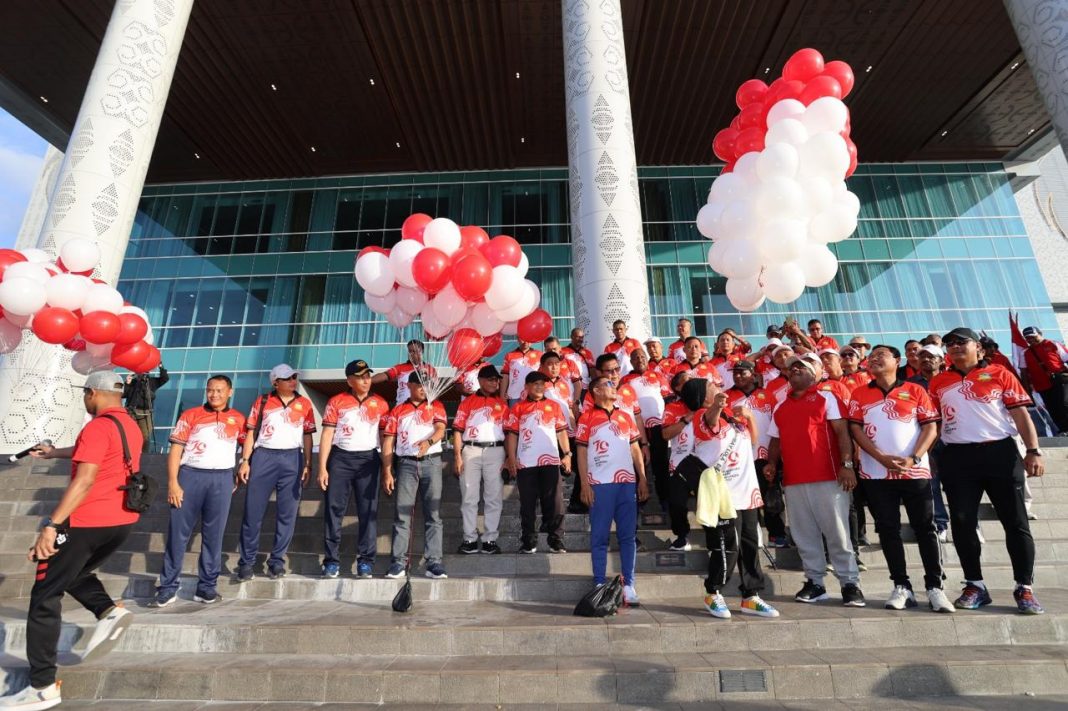 JAYAPURA (PT) – Pj. Gubernur Provinsi Papua, DR. M. Ridwan Rumasukun secara resmi melaunching pencanangan Hari UIang Tahun (HUT) Republik Indonesia ke 79 tahun 2024 yang ditandai dengan jalan santai dan gerakan pasar murah di halaman Kantor Gubernur, Jumat, (2/8).