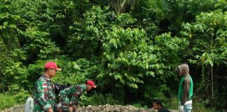 Satgas Yonif 501/Kostrad Perbaiki Jalan Bersama