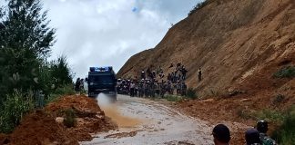 Di Paniai, TNI/Polri Bantu Bersihkan Material Longsor