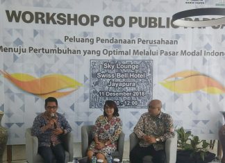 JAYAPURA (PT) – Bursa Efek Indonesia (BEI) Jayapura menggelar Workshop Go Public bertajuk Peluang Pendanaan Perusahaan Menuju Pertumbuhan yang Optimal Melalui Pasar Modal di Swiss-Belhotel Papua, Jayapura, Selasa (11/12).