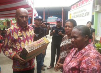 JAYAPURA (PT) - Wali Kota Jayapura, DR. Benhur Tomi Mano, MM secara resmi menyerahkan bantuan pemberdayaan distrik ditingkat kelurahan dan kampung Se-Distrik Jayapura Selatan, Jumat (3/8/2018) di Kantor Distrik Jayapura Selatan.