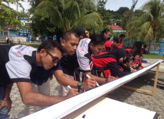 JAYAPURA (PT) - Ratusan siswa SMKN 1 Jayapura bersama club otomotif Kijang Club yang dimotori BKKBN Papua tandatangani sebuah ikrar tentang menghindari seks bebas dan narkoba, Jumat (13/42018) di Halaman...