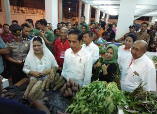 JAYAPURA (PT) - Presiden Joko Widodo didampingi ibu negara Ny. Iriana Widodo dalam kunjungan di Papua lebih khusus di Kota Jayapura menyempatkan diri mengunjungi Pasar Mama-Mama di Jalan Percetakan Kota Jayapura dengan membeli buah, keladi, petatas, tomat dan lengkuas,...