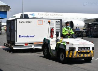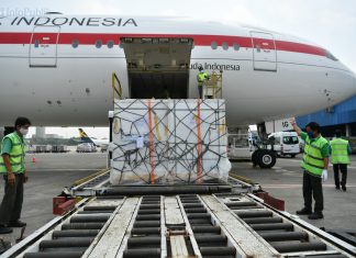 Vaksin Sinopharm saat tiba di tanah air dengan menggunakan pesawat Garuda Indonesia