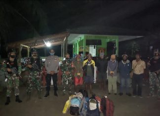 Anggota Satgas Pamtas RI-PNG Yonif 131/BRS saat mengamankan enam warga yang diduga kuat terlibat OPM