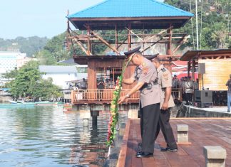 JAYAPURA (PT) - Dalam rangka memperingati Hari Bhayangkara ke 73, Polda Papua mengelar upacara tabur bunga di laut, yang dipimpin Wakapolda Papua, Brigjen Pol Drs Yakobus Marjuki, Selasa, (2/7).