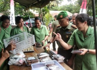 JAYAPURA (PT) - Dalam rangka mempertingati Hari Ulang Tahun (HUT) Persit ke 73, Pengurus Persit Kartika Candra Kirana Koorcab Korem 172/Praja Wira Yakthi (PWY) menggelar kegiatan pasar murah dan pengobatan gratis di Asrama Korem 172/PWY.