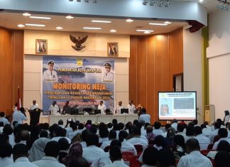 JAYAPURA (PT) - Badan Perencanaan Pembangunan Daerah (Bappeda) Kota Jayapura menggelar monitoring meja program dan kegiatan pembangunan triwulan ke IV tahun anggaran 2018 yang berlangsung di Aula Sian Soor, Kantor Wali Kota Jayapura, Rabu (12/12).