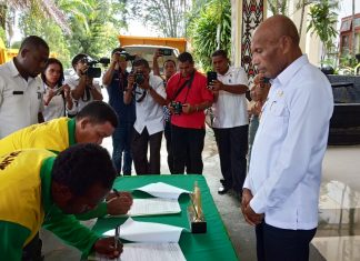 JAYAPURA (PT) - Wali Kota Jayapura, Dr. Benhur Tomi Mano, MM menyerahkan sejumlah kendaraan operasional kebersihan Kota Jayapura dan atribut perlengkapan kepada petugas kebersihan, Rabu (30/10).