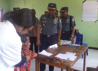 JAYAPURA (PT) - Dalam rangka menyambut HUT TNI Aangkatan Laut, Lantamal X Jayapura menggelar bhakti sosial kesehatan di Skow Mabo, Distrik Muara Tami, Kota Jayapura, Kamis (6/9/2018).