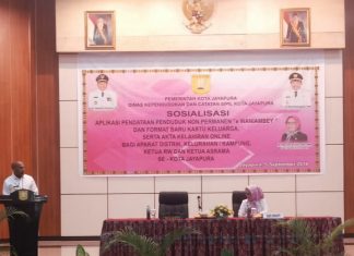 JAYAPURA (PT) Pemerintah Kota Jayapura melalui Dinas Kependudukan dan Catatan Sipil (Dispendukcapil) melakukan sosialisasi program Aplikasi E-Waniambey kepada warga Kota jayapura, Rabu (5/9/2018).