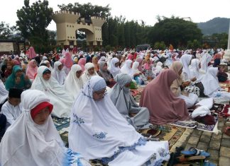 JAYAPURA (PT) - Wakil Wali Kota Jayapura, Ir. H. Rustan Saru, MM bersama ribuan umat muslim melaksanakan Shalat Idul Adha 1439 H di Lapangan Mako Brimob, Rabu (22/8/2018).