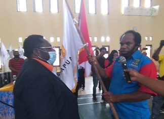KEEROM (PT) – Sekretaris Umum Komite Olahraga Nasional Indonesia (KONI) Provinsi Papua, Kenius Kogoya melantik dan mengukuhkan jajaran pengurus Pengganti Antar Waktu (PAW) KONI Kabupaten Keerom masa bhakti 2017-2021.