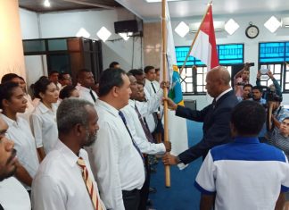 JAYAPURA (PT) - Dewan Pimpinan Wilayah FGM-GKI Port Numbay, Dr. Benhur Tomi Mano, MM melantik Forum Generasi Muda Gereja Kristen Injili di Tanah Papua (FGM-GKI) Dewan Pimpinan Cabang Port Numbay masa periode 2019-2022.