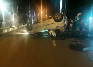 Usai Senggol Pengendara Motor, Mobil Milik Oknum TNI Terbalik