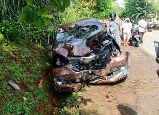 JAYAPURA (PT) – Mobil Daihatsu Ayla yang dikemudikan oknum anggota TNI berinisial AZ (24), terbalik usai menabrak pembatas jalan saat melintas lampu merah di depan Mako Brimob, Polda Papua, Kotaraja, Kota Jayapura, Rabu (13/2) sekitar pukul 03.40 WIT.