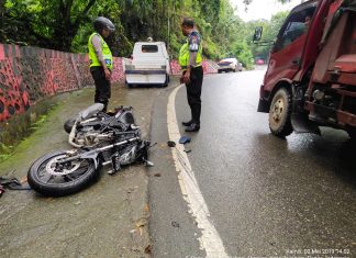 JAYAPURA (PT) - Kecelakaan maut melibatkan sepeda motor dan mobil terjadi di tikungan mata kucing, Skyland, Jayapura Selatan, Kota Jayapura, Kamis, 2 Mei 2019.