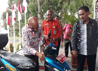 JAYAPURA (PT) - Wali Kota Jayapura, Dr Benhur Tomi Mano, MM, melalui Dinas Pemberdayaan Perempuan, Perlindungan Anak dan Keluarga Berencana (DP3AKB) Kota Jayapura menyerahkan bantuan kendaraan penunjang operasional.