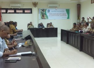 SENTANI (PT) - Untuk mengembalikan kejayaan komoditas Kakao di Kabupaten Jayapura, Pemerintah Kabupaten Jayapura melalui Dinas Perkebunan dan Peternakan laksanakan FGD Pengembangan Ekonomi Rakyat melalui Komoditas Kakao, di Aula Kantor Bupati Jayapura, Senin (13/1).