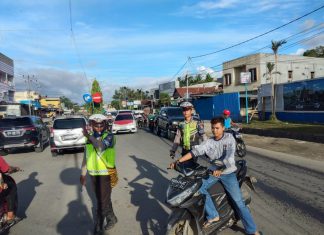 SENTANI (PT) - Unit Turjawali Satuan Lalu Lintas Polres Jayapura melaksanakan patroli dan pengaturan di Pertigaan Tabita, Sentani, Kabupaten Jayapura, Kamis, (16/1).