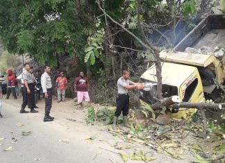 SENTANI (PT) – Sebuah truk Mitsubishi DS 9969 AD pengangkut material pasir yang dikemudikan Zulkadri (30) dilaporkan tergelincir dan jatuh dari Bukit Manangsang hingga ke Parit Pinggir Jalan Netar, Kampung Nendali, Sentani Timur, Kabupaten Jayapura, Rabu, (22/1).