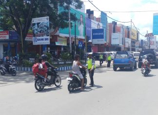 SENTANI (PT) – Guna menekan angka pelanggran lalu lintas di Sentani, Kabupaten Jayapura, Polres Jayapura melalui Satuan Lalu Lintas melaksanakan kegiatan Razia Stasioner (Kasat Mata) yang bertempat di Lampu Merah Pati 1 Bandara, Senin (18/11).