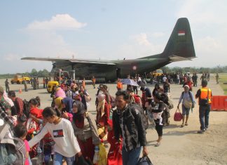SENTANI (PT) – Sebanyak 120 orang korban kerusuhan dari Wamena dievakuasi dengan mengunakan pesawat Herkules milik TNI AU, Rabu, (25/9).