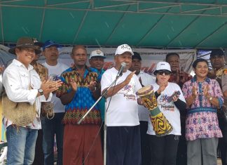 SENTANI (PT) – Bupati Jayapura, Mathius Awoitauw membuka Festival Budaya Makan Papeda ‘Helay Mbay Hote Mbay’ ke 3 di Kampung Abar, Ebungfau Sentani Tengah, Kabupaten Jayapura Sabtu, (28/9).