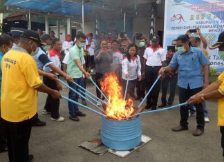 JAYAPURA (PT) – Bupati Jayapura, Mathius Awoitauw bersama Forkompinda Kabuapten Jayapura dan Kepala BNN Jayapura, melakukan pemusnahan barang bukti narkotika jenis ganja yang ditemukan di Lapas Narkotika Kelas II B Jayapura, baru-baru ini.