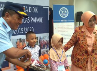 JAYAPURA (PT) - Hari pertama masuk sekolah tahun ajaran baru 2019/2020, sebagai Pembina Harian Komandan Lanud Silas Papare Marsma TNI Ir. Tri Bowo Budi Santoso, MM, MTr.(Han) di Yayasan Ardhya Garini Pengurus Cabang Lanud Silas Papare.