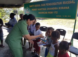 SENTANI (PT) - Persit Kartika Candra Kirana Koorcab Korem 172/PWY menggelar Bakti Sosial dan Pengobatan Gratis oleh Persit Koorcab Rem 172 yang bertempat di Kampung Puay Distrik Sentani Timur, Kabupaten Jayapura, pada Selasa (14/5).